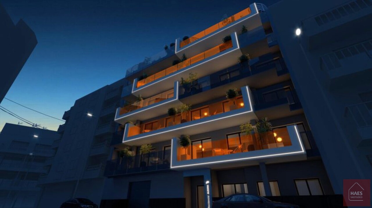 NIEUWBOUW WONING IN TORREVIEJA Nieuwbouw wooncomplex van 21 appartementen en penthouses in het centrum van Torrevieja. Het complex is verdeeld over vijf verdiepingen en de locatie is naast het winkelgebied compleet met traditionele tapasbars, winkels, terrasjes, banken, internationale eetgelegenheden en nog veel meer lokale voorzieningen die deze altijd zo populaire vakantie- en woonbestemming versterken. Het complex heeft een gemeenschappelijk zwembad en sauna. Een ondergrondse parkeerplaats tegen betaling.