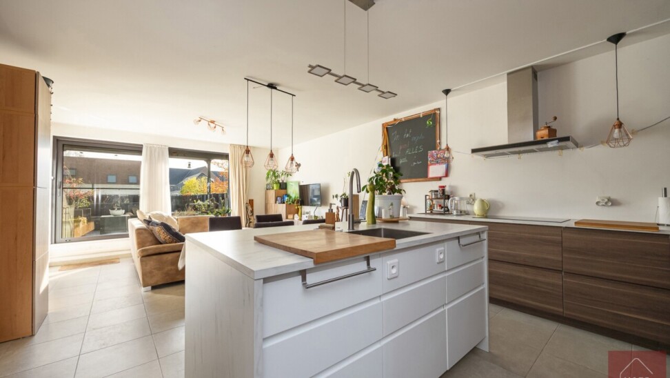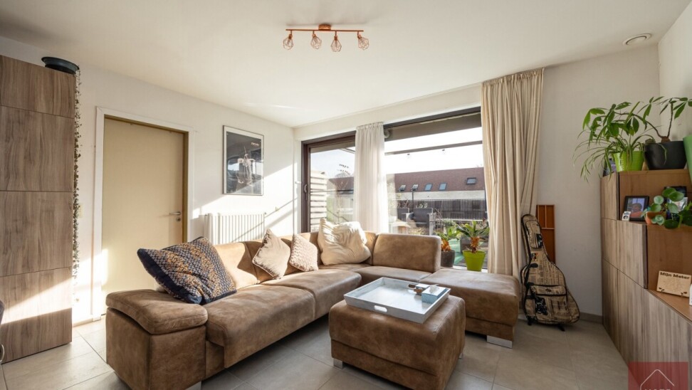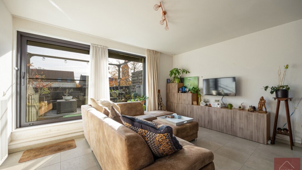 -Een gezellige en lichte leefruimte en een schuifraam naar het terras